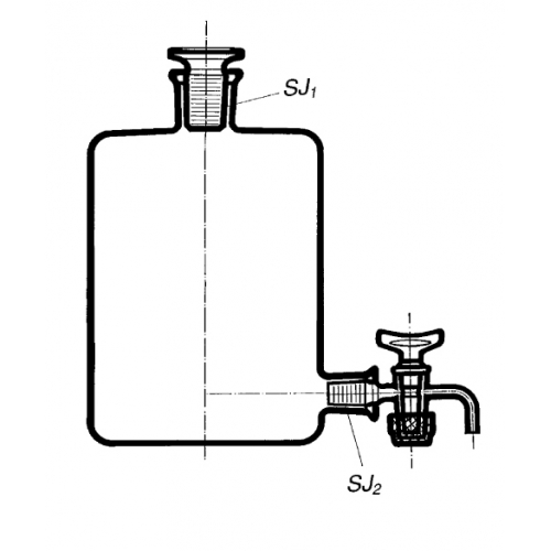 Выполненная из прозрачного высококачественного стекла бутыль Вульфа с нижним краном, со шлифами. Плотное закрывание лабораторной посуды обеспечивается тем, что пробка притерта к бутылке.
